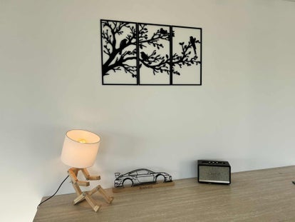 Matériaux : Mdf 6mm laqué noir et socle en chêne massif gravé.