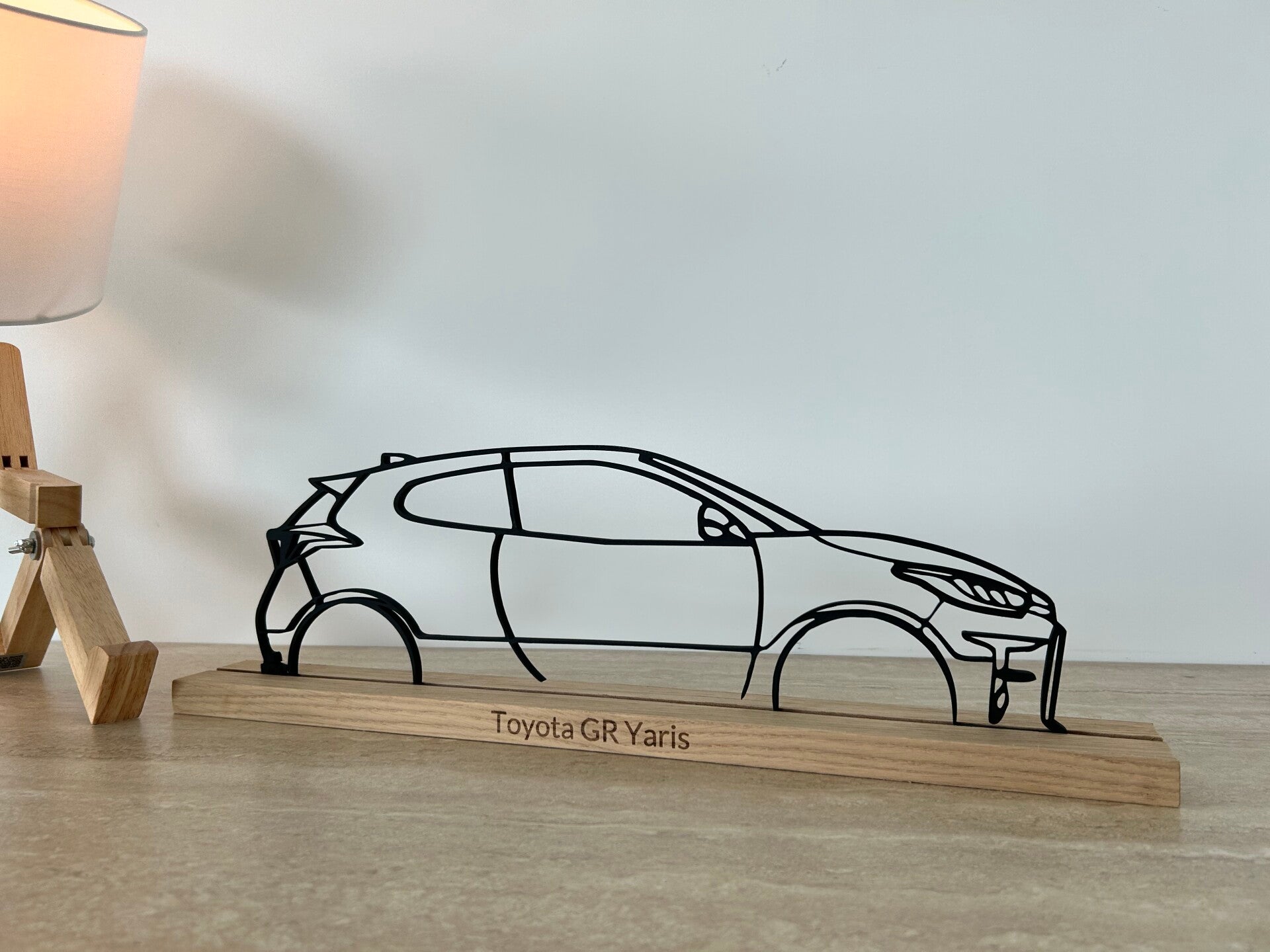 Silhouette de 49cm sur socle en chêne gravé de 50cm.